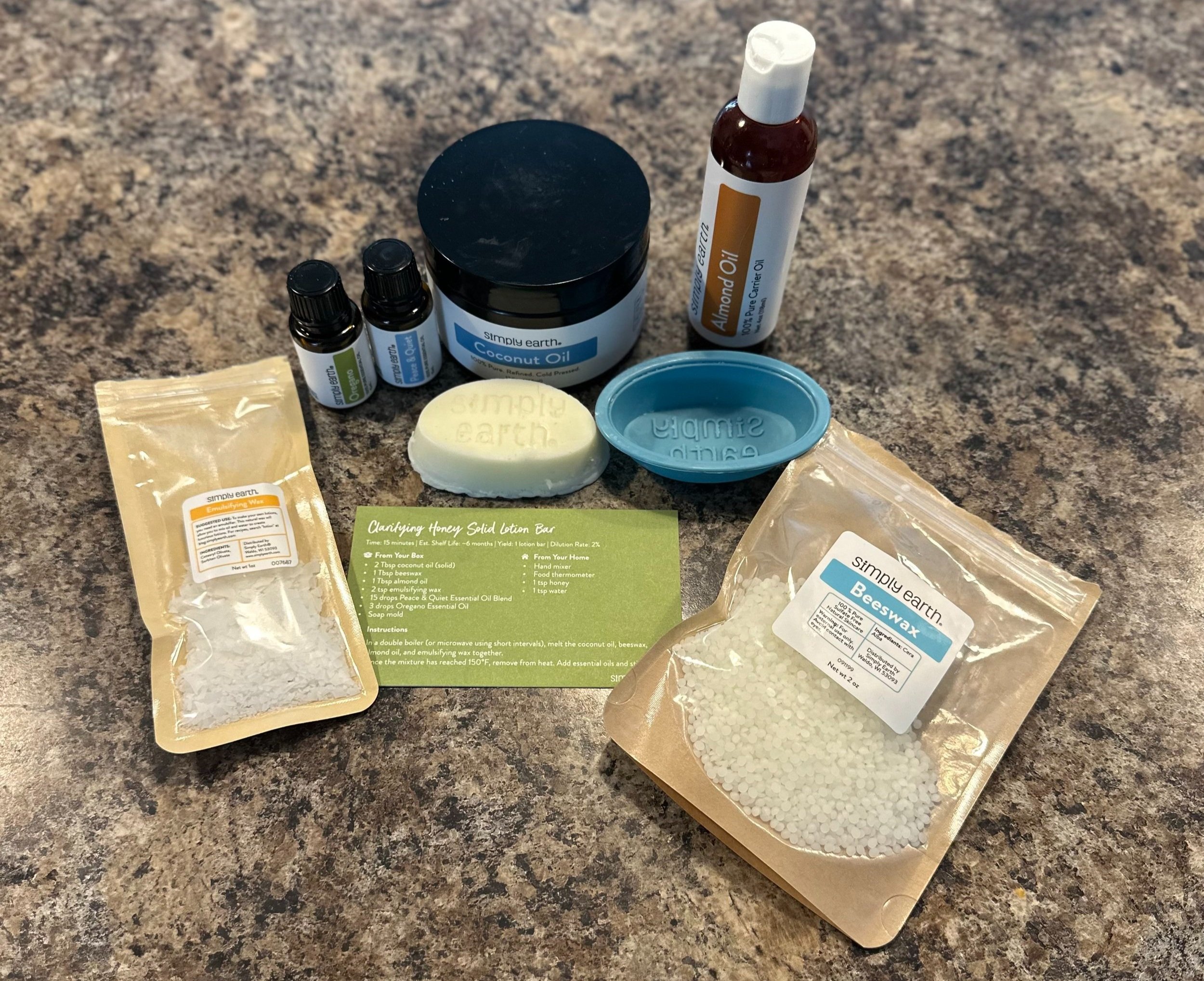 Hello and welcome to blog 2 for my Simply Earth Recipe Box. This month’s box includes body care recipes, the theme is lotions and balms that promote rest. My box couldn’t have came at a better time, we just happened to have a snow day the day it arrived along with my daughters Kiwico boxes so we had a whole day of crafting! The only problem, I was so excited to play with my kids and create new things that I forgot to take pictures of my process! Ahh! But I did get final product photos and plan on giving lots of details about everything in the box along with links to blog posts from Simply Earth.